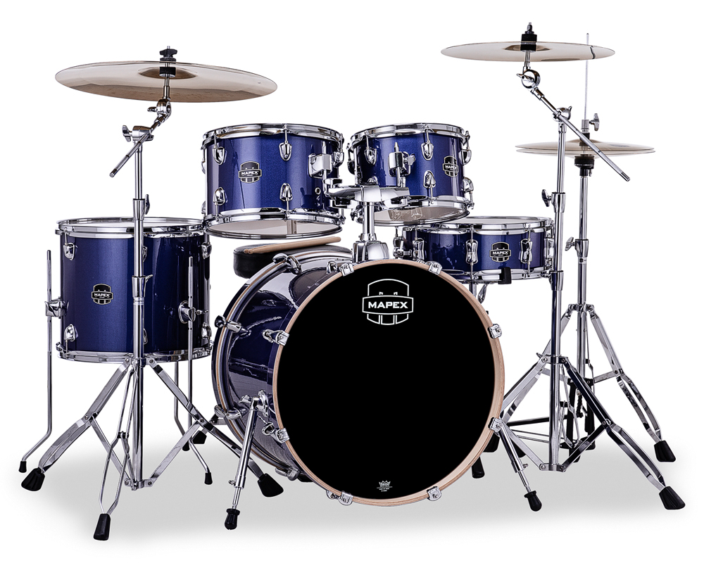 Abgerundet wird das Set durch das Mapex Beckenset aus Messing, bestehend aus einer 14" HiHat, einem 16" Crash und einem 20" Ride. Mit diesem Komplettset ist man gut gerüstet, um sofort mit dem Spielen zu beginnen.