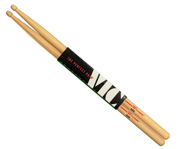 Die 55A Sticks von Vic Firth haben eine Länge von 406mm und liegen mit einem Durchmesser von 14,7mm zwischen den 5A und 5B Stick-Modellen. Die Sticks aus Hickory Holz sind klar lackiert und haben einen eichelförmigen Kopf aus Holz. Vic Firth Stöcke haben eine hohe Fertigungsqualität sie sind paarweise abgewogen und tonal zueinander abgestimmt.