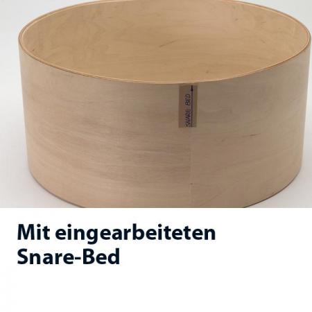 Hochwertiger, unlackierter Holz-Kessel aus 7Lagen Maple (Ahorn) Holz in 6mm Stärke. Mit vorgefräster 45 Grad Kesselgratung und eingeschliffenem Snarebed.